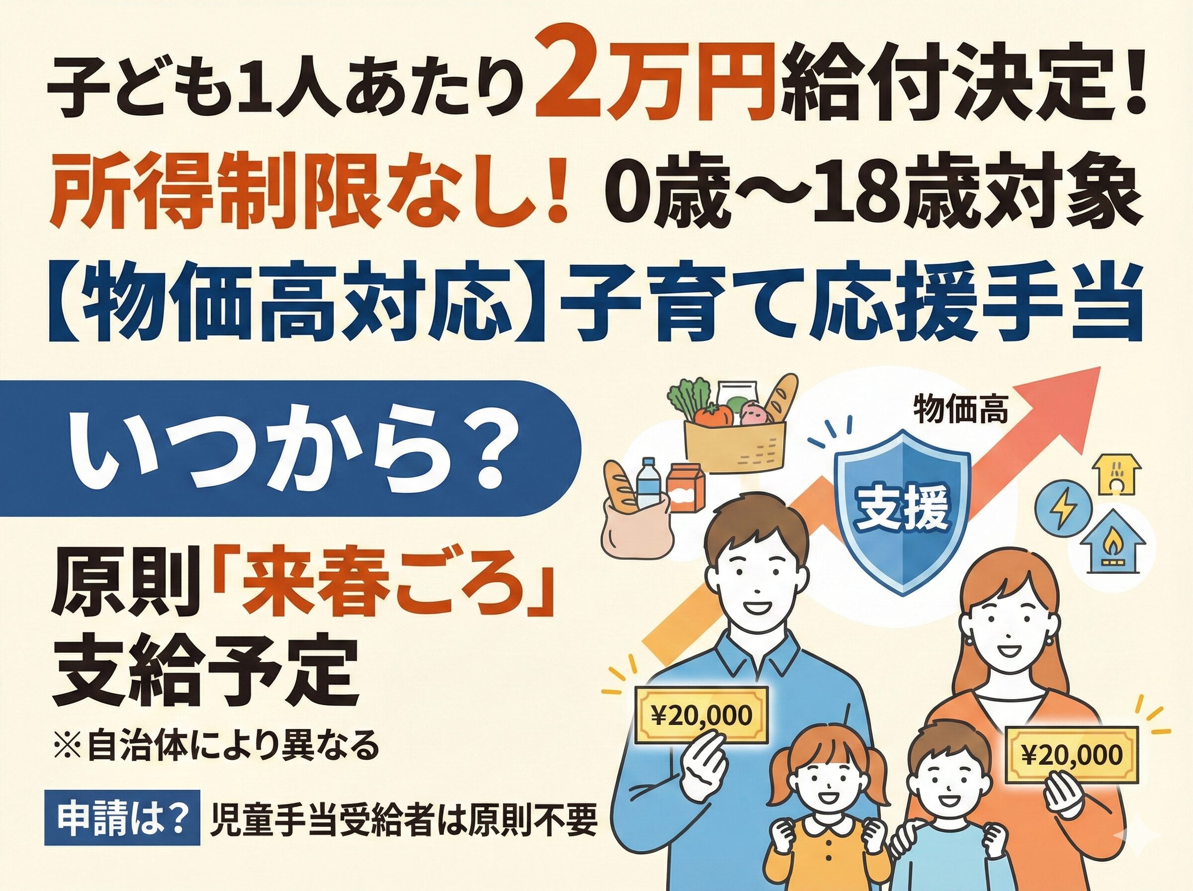 子ども2万円給付はいつから?所得制限なし「子育て応援手当」の概要